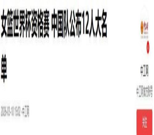 参考文献:1.中工网:《女篮世界杯资格赛 中国队公布12人大名单》2026-03-102.新华社:《世界杯资格赛中国女篮首战击败马里队》2026-03-113.长江日报:《世界级篮球赛事在武汉鸣哨,中国女篮开门红》2026-03-12